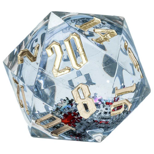 This festive 54mm Snowglobe d20 contains glitter and snowflakes that float when rolled.