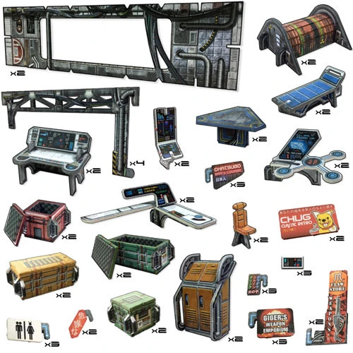 The terrain is supplied flat-packed on high-quality, high-density card, printed in full colour on both sides, so no painting required! The terrain requires assembly, and some smaller parts will require glue.