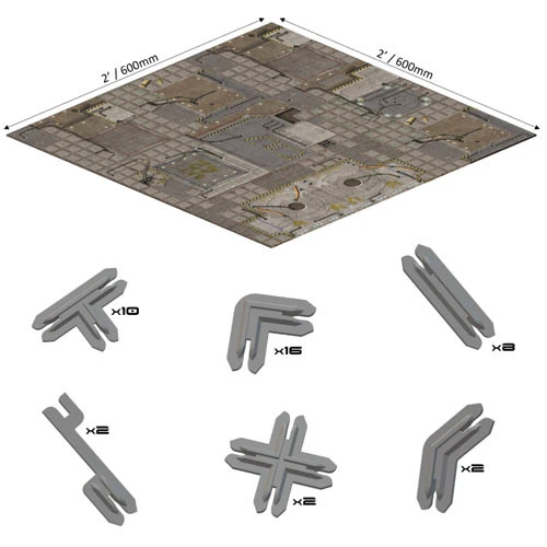 This box contains everything you need to build a single-level gaming board covering an area of up to 2′ x 2′ / (600mm x 600mm) or larger, suitable for all 28-35mm sci-fi games in a commercialised dystopia. All the pieces are modular and can be assembled in any combination you choose for a different set-up every time. A Neoprene Gaming Mat (600mm x 600mm) is included. The set can be expanded with other sets from the Battle Systems terrain range.