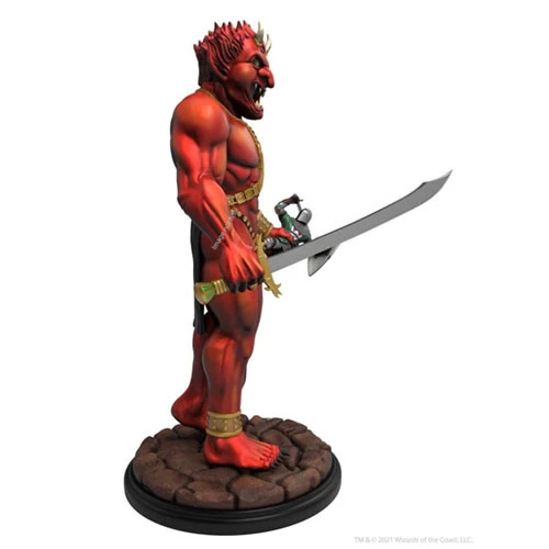 12″ resin statue faithfully recreates the Efreeti featured on the cover of the 1st Edition Dungeon Master’s Guide, but advances the scene to place the sword-wielding knight in the efreeti’s clutches.