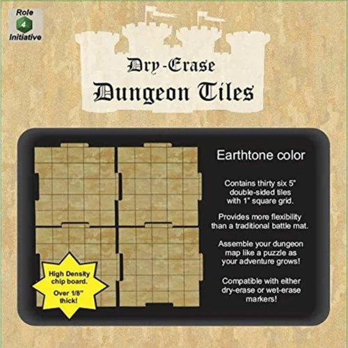 These dungeon tiles are double-sided, compatible with dry and wet erase, and are perfect for any campaign or role playing game! Assemble your dungeon map like a puzzle as your adventure grows, and use whichever side works for you!