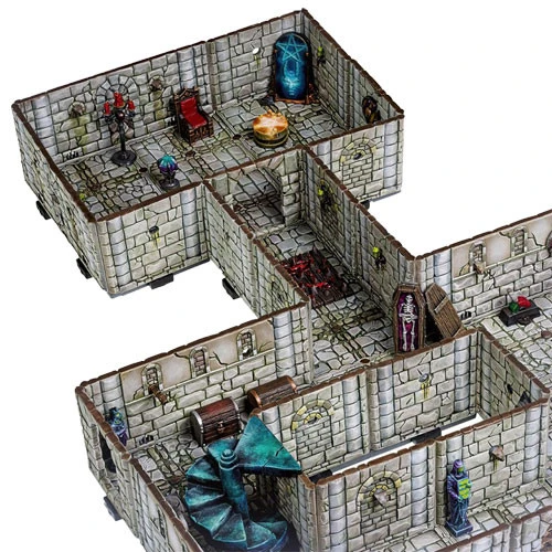 Dungeons & Lasers is an innovative plastic tabletop terrain system based on tiles, scaled for any game with 28-32mm miniatures. Available in both sci-fi and fantasy styles, fully modular design allows you to mix different sets and themes any way you please. Made of hard, durable and richly detailed plastic, D&L terrains are designed to be as easy to assemble and rebuild as possible, with no glue required. Stackable architecture and a vast amount of customization bits allow for a unique setting every time you play. Dungeons & Lasers is a constantly expanding range of products that offer fantastic value for money and endless possibilities limited only by imagination.