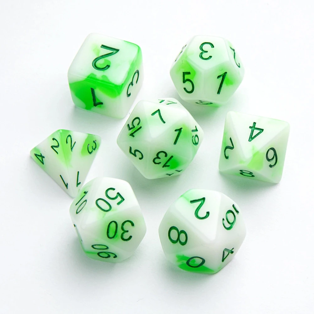 Due to the unique design of these dice, coloring and color ratios will vary from set to set and may not be exactly as pictured.