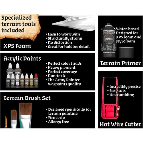 Armed with specially manufactured XPS foam board and a versatile hot wire cutter, go crazy and don’t let anything but your imagination hold you back! Find inspiration in our many online tutorial videos, or the inspirational guide included in this set, to conjure up any dungeon or cavern complex you might want. Do it yourself or with your party – once you cut and create your first magic portal, you’ll never look back!