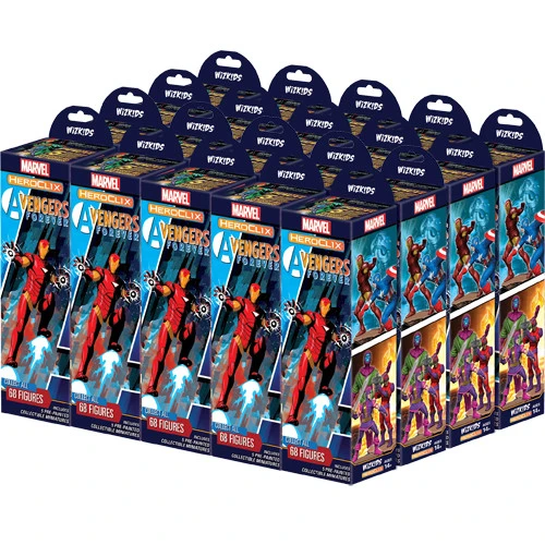 Across the multiverse, the Avengers answer the call! Marvel HeroClix: Avengers Forever summons the Mightiest Heroes from every Earth to battle it out in HeroClix! Celebrating both the classic and the all-new Avengers Forever comic runs, this 5-figure booster release features iconic Avengers heroes like Captain America, Iron Man, and Dr. Strange as they face off against the likes of Kang the Conqueror, Immortus, and Red Skull!