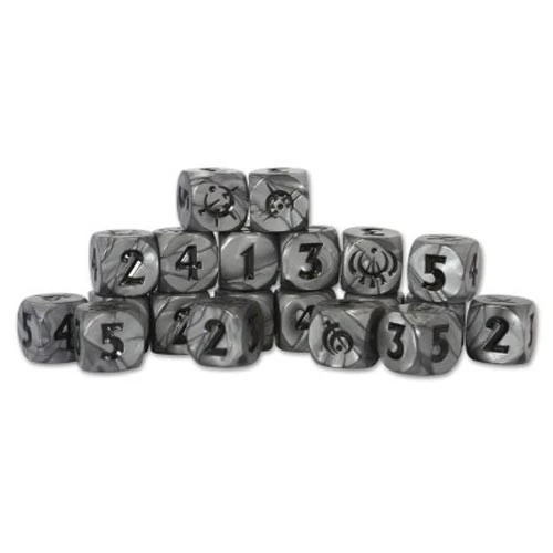 Bring all the magic of Allomancy to your favorite games. The latest in Mistborn tabletop magic is here! This beautiful set includes twenty (20) premium acrylic dice in a silver color, each replacing the 6 face with a unique magical Allomancy symbol, based on the Steel Alphabet used during the time of Vin, Kelsier, and the Lord Ruler.