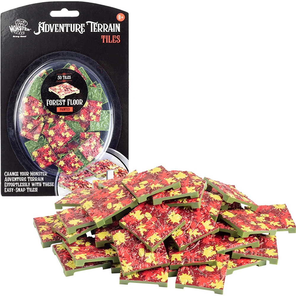 This pack includes fifty 1″x1″ easy-snap painted forest floor tiles.