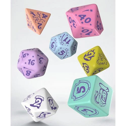 My Very First Set: Little Berry is an adorable, multi-colored set of dice: each polyhedron has a different background color and a different fairytale character depiction. The painting is violet, mesmerizing the young players and letting you tell the story of a Little Berry.