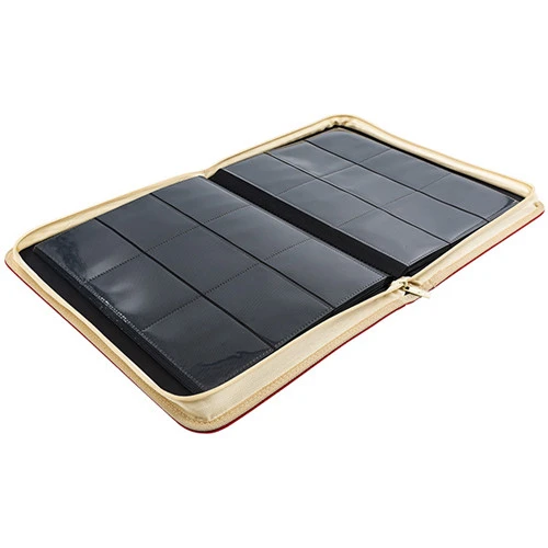 The Vivid Deluxe 9-Pocket Zippered PRO-Binders are designed for collecting and organizing your favorite trading cards. Each binder features a padded leatherette cover with a matching zipper closure and pull tab. After unzipping the binder, you’ll find twenty 9-pocket pages sized for standard trading cards in side-loading pockets, allowing you to store up to 360 cards in Deck Protector sleeves. Pages feature a low-friction black backing, creating a separation between the front and back pockets as well as providing cards a classic framed look. Every PRO-Binder is made with acid-free, non-PVC materials to ensure your cards are protected and preserved.