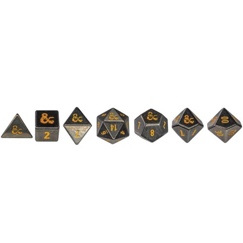 Ward off enemies on your next adventure with the commanding roll of these official Dungeons & Dragons Heavy Metal dice! Made from the same heavy, zinc alloy material as the Heavy Metal D20 sets, rolling these dice will send a rumble through the realm!